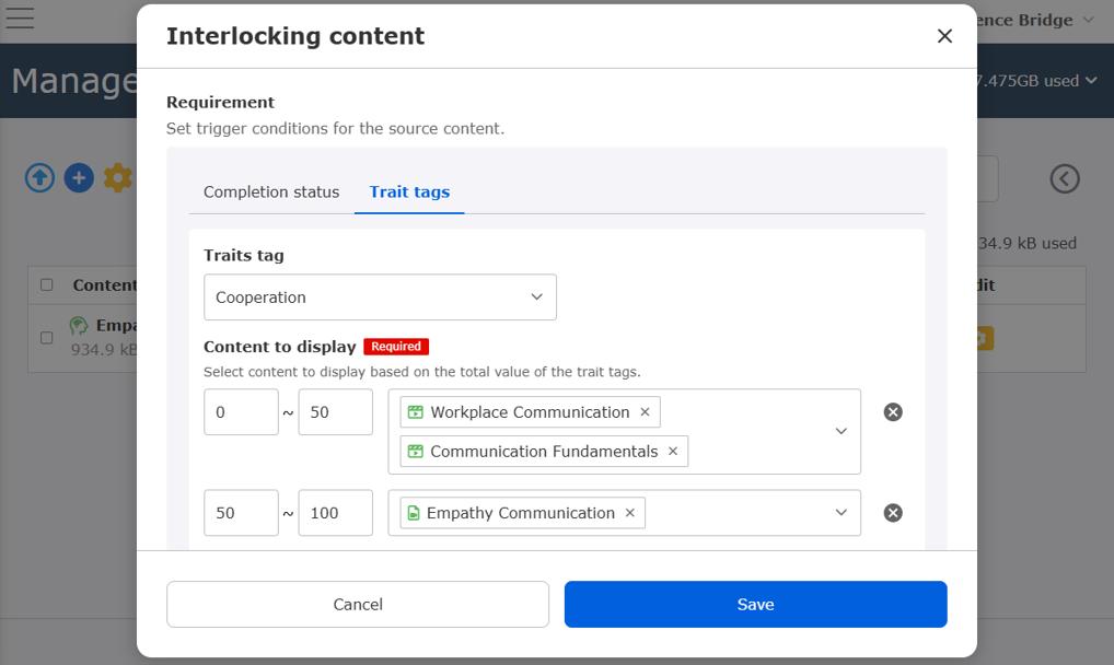With this new feature, the content displayed to each learner can be automatically controlled based on their personality test results. Admins need only configure the conditions; the system will then present the optimal content for each learner automatically.